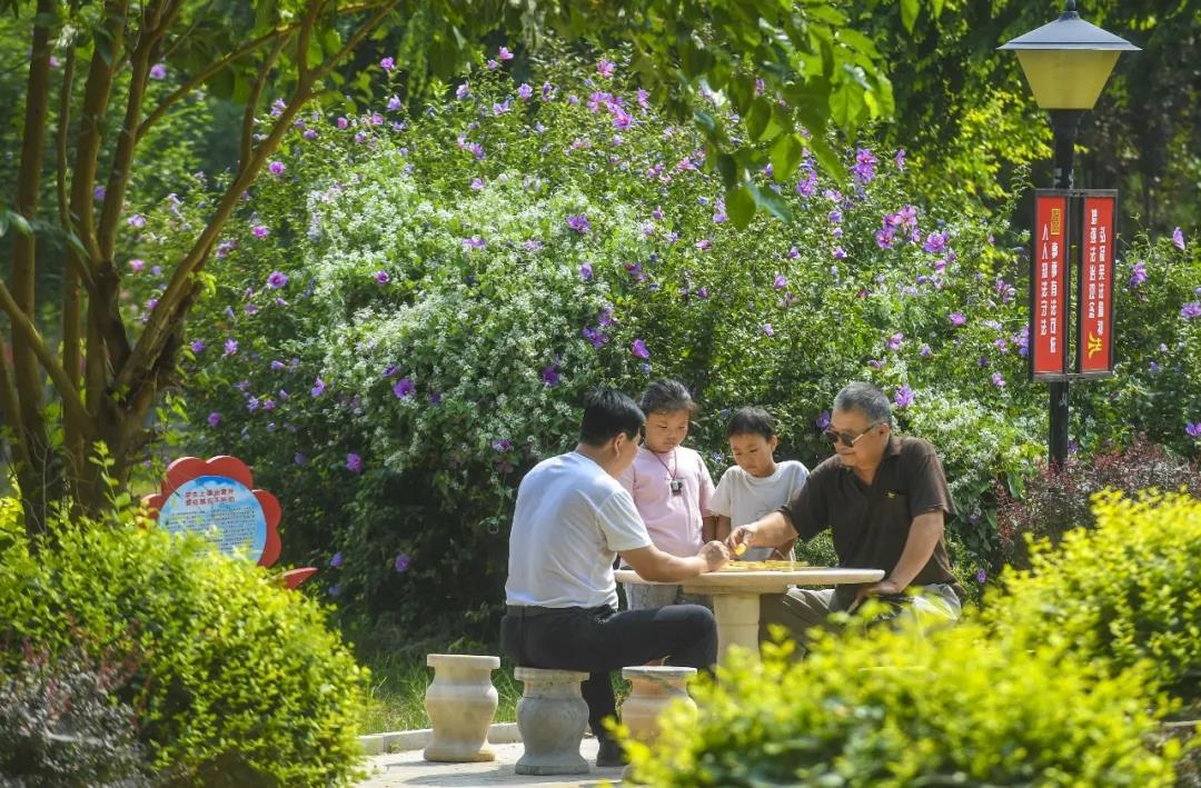 河北省衡水市桃城区赵家圈镇前铺村生态文化公园内村民在下棋。新华社记者 李晓果 摄