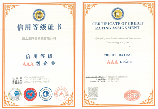 喜报|清之源环保再次获评“AAA级企业信用等级”