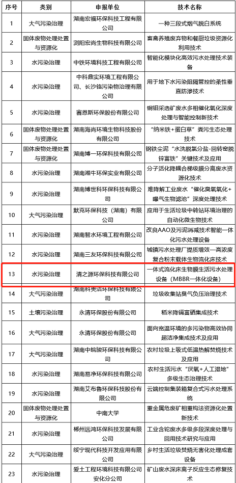 2021年湖南省环境保护实用技术名录发布:清之源环保榜上有名!